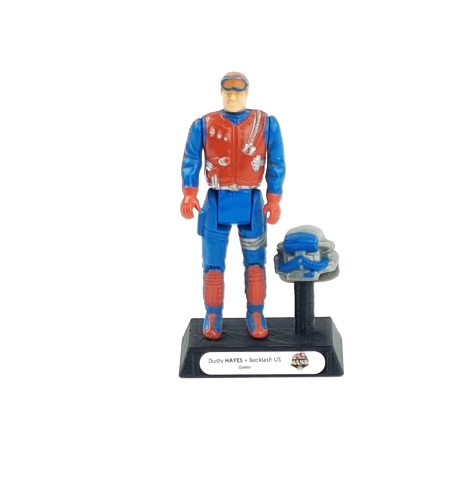 Panier MASK : Dusty Hayes +... 55,00 € Dusty Hayes avec son masque court Backlash pour le véhicule Gatorþ Contenu de l'offre :Figurine de Dusty Hayes Masque court Backlash Le support...
