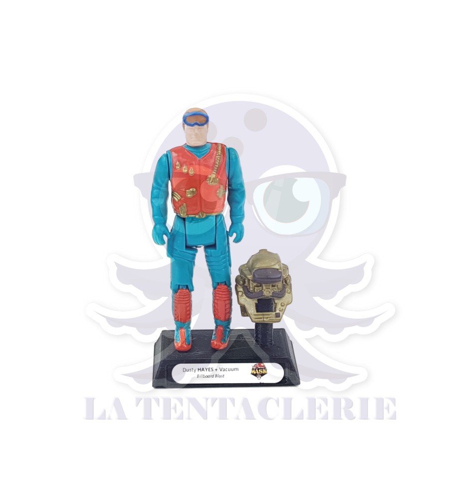 Dusty Hayes avec son masque Vaccum pour le jouet Billboard Blast