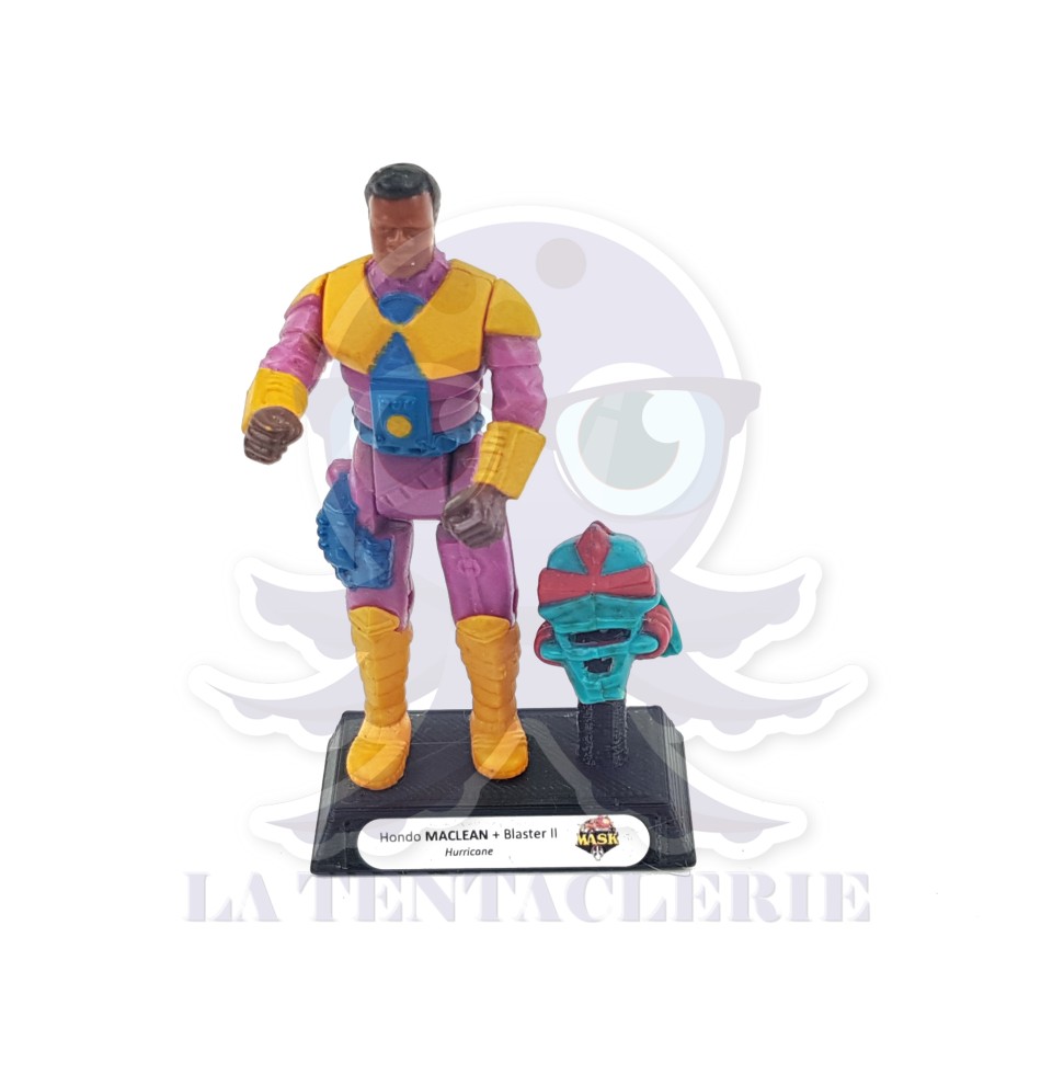 Hondo Maclean avec son masque Blaster II pour le jouet Hurricane