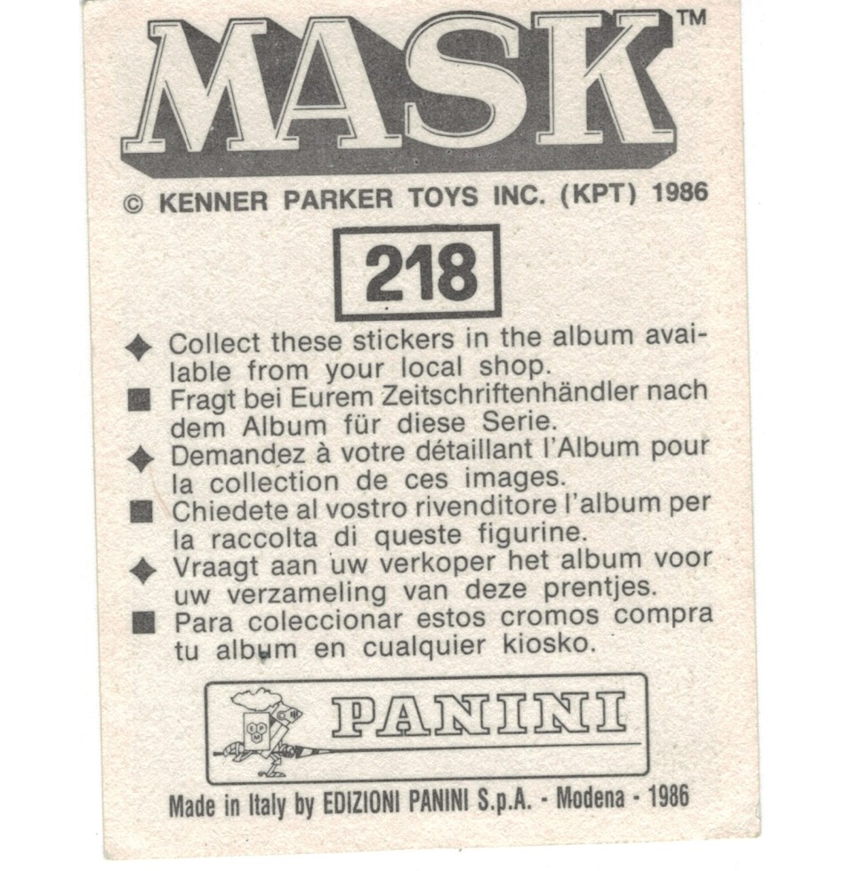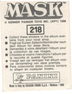 MASK : Vignette pour album Panini MASK
