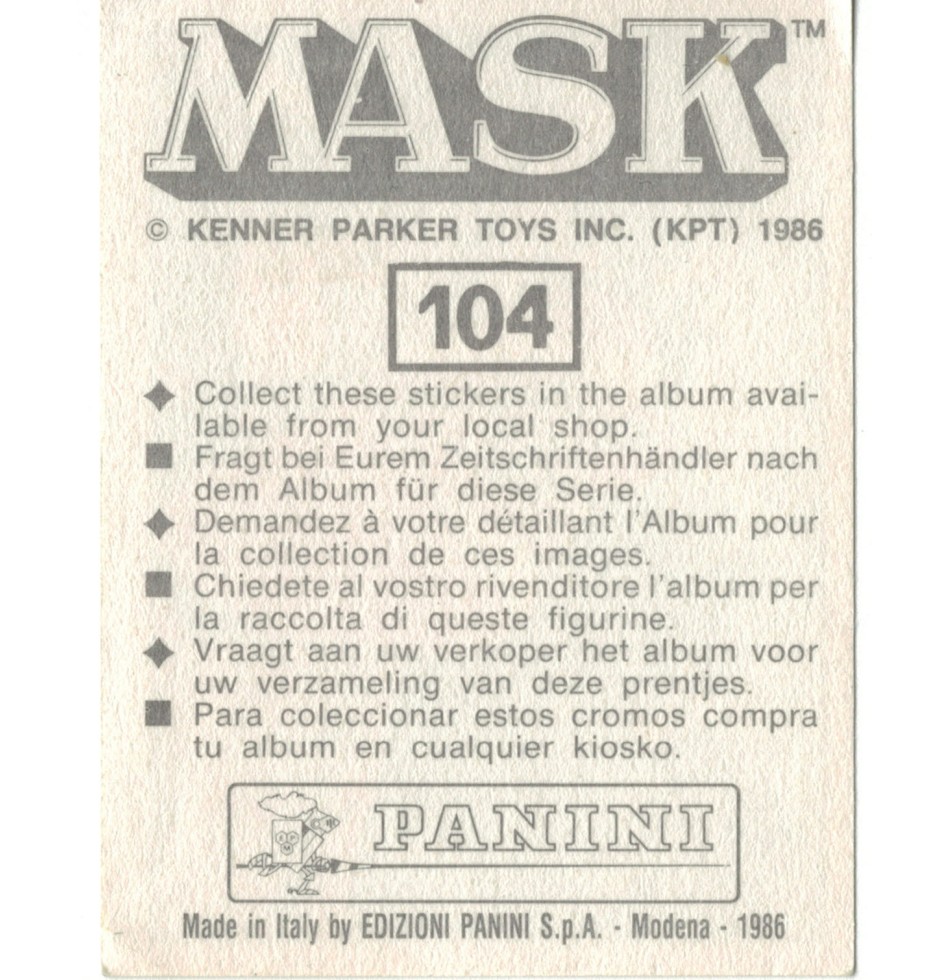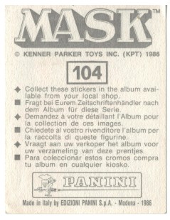 Adhesive sticker for MASK Panini album
