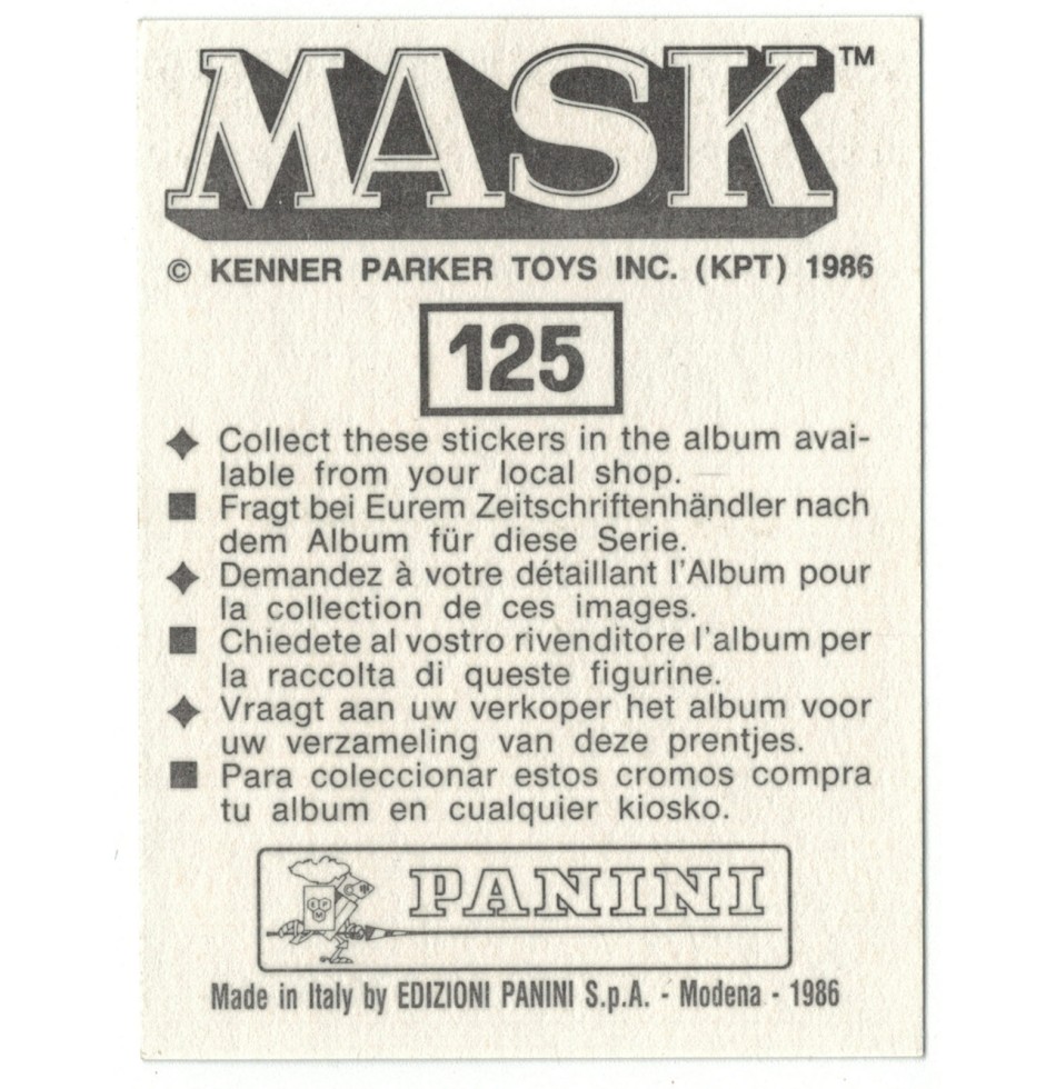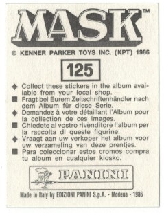 Adhesive sticker for MASK Panini album