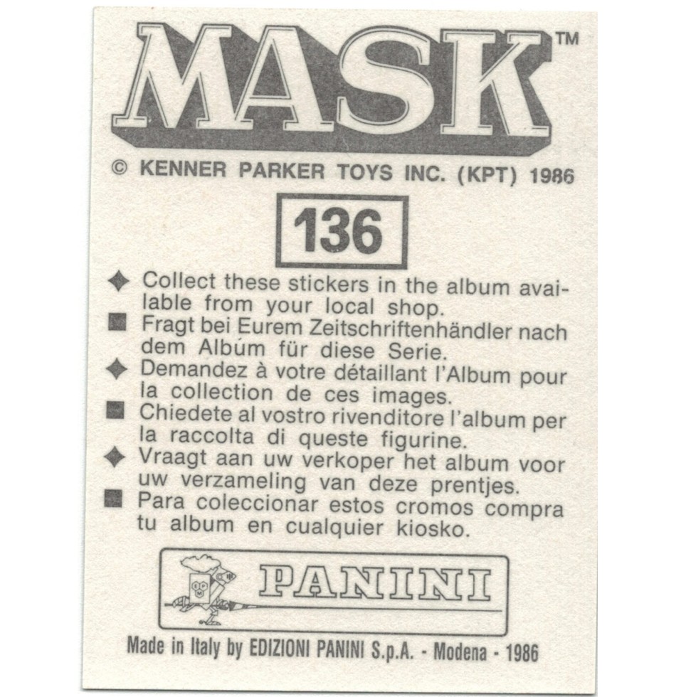 Adhesive sticker for MASK Panini album