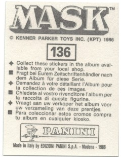 MASK : Adhesive sticker for MASK Panini album